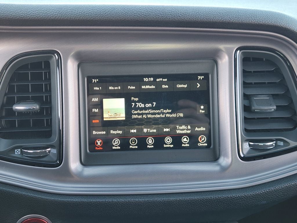 The interior of this Challenger SXT is equally impressive, featuring premium Houndstooth cloth sport seats, a leather-wrapped steering wheel, and a user-friendly Uconnect 4 infotainment system with a 7-inch display. Stay connected with Apple CarPlay and Android Auto integration, and enjoy the convenience of the ParkView Rear Back-Up Camera.
