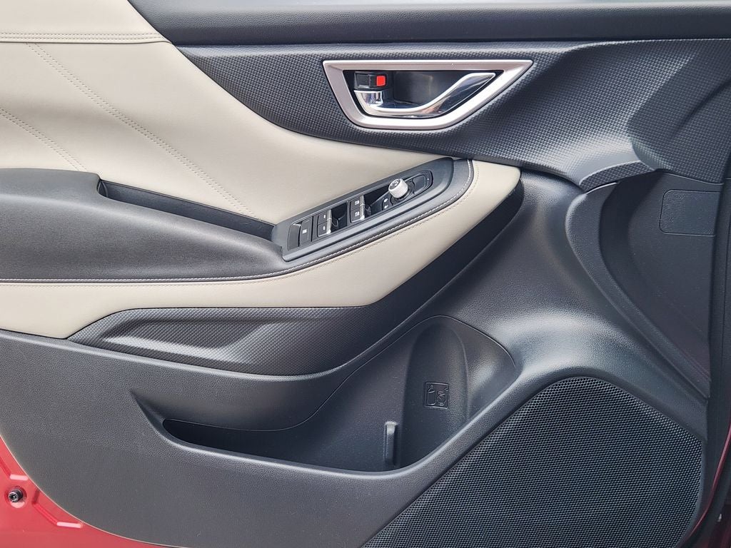 This 2023 Subaru Forester Limited in Crimson Red Pearl comes with the following features: 2.5L 4-Cylinder DOHC 16V AWD Standard Model, 3.70 Axle Ratio, 4-Wheel Disc Brakes, 6 Speakers, ABS brakes, Air Conditioning, Alloy wheels, AM/FM radio: SiriusXM, Anti-whiplash front head restraints, Auto High-beam Headlights, Automatic temperature control, Brake assist, Bumpers: body-color, CD player, Driver door bin, Driver vanity mirror, Dual front impact airbags, Dual front side impact airbags, Electronic Stability Control, Emergency communication system: STARLINK Safety and Security (Subscription Required), Exterior Parking Camera Rear, Four wheel independent suspension, Front anti-roll bar, Front Bucket Seats, Front Center Armrest, Front dual zone A/C, Front fog lights, Front reading lights, Fully automatic headlights, Heated door mirrors, Heated Front Bucket Seats, Heated front seats, Illuminated entry, Knee airbag, Leather Shift Knob, Low tire pressure warning, Occupant sensing airbag, Outside temperature display, Overhead airbag, Overhead console, Panic alarm, Passenger door bin, Passenger vanity mirror, Perforated Leather-Trimmed Upholstery, Power door mirrors, Power driver seat, Power Liftgate, Power moonroof: Panoramic, Power steering, Power windows, Radio data system, Radio: Subaru Starlink 8.0 Multimedia Plus System, Rear anti-roll bar, Rear seat center armrest, Rear window defroster, Rear window wiper, Remote keyless entry, Roof rack: rails only, Security system, Speed control, Speed-sensing steering, Split folding rear seat, Spoiler, STARLINK/Apple CarPlay/Android Auto, Steering wheel mounted audio controls, Tachometer, Telescoping steering wheel, Tilt steering wheel, Traction control, Trip computer, Turn signal indicator mirrors, Variably intermittent wipers, and Wheels: 18 x 7.0 J Black Machine Finish Alloy.