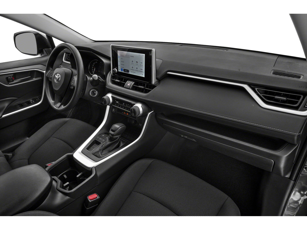 This 2023 Toyota RAV4 LE in Silver Sky Metallic comes with the following features: 2.5L 4-Cylinder DOHC Dual VVT-i FWD Black Cloth Black Cloth, 17 Steel Wheels, 4-Wheel Disc Brakes, 6 Speakers, ABS brakes, Air Conditioning, AM/FM radio: SiriusXM, Auto High-beam Headlights, Axle Ratio: 3.177, Brake assist, Bumpers: body-color, Driver door bin, Driver vanity mirror, Dual front impact airbags, Dual front side impact airbags, Electronic Stability Control, Emergency communication system: Safety Connect (10-year trial), Exterior Parking Camera Rear, Fabric Seat Trim, Four wheel independent suspension, Front anti-roll bar, Front Bucket Seats, Front Center Armrest, Front reading lights, Illuminated entry, Knee airbag, Low tire pressure warning, Occupant sensing airbag, Outside temperature display, Overhead airbag, Overhead console, Panic alarm, Passenger door bin, Passenger vanity mirror, Power door mirrors, Power steering, Power windows, Radio data system, Radio: AM/FM/XM Audio System, Rear anti-roll bar, Rear seat center armrest, Rear window defroster, Rear window wiper, Remote keyless entry, Speed control, Speed-sensing steering, Split folding rear seat, Spoiler, Steering wheel mounted audio controls, Tachometer, Telescoping steering wheel, Tilt steering wheel, Traction control, and Trip computer.