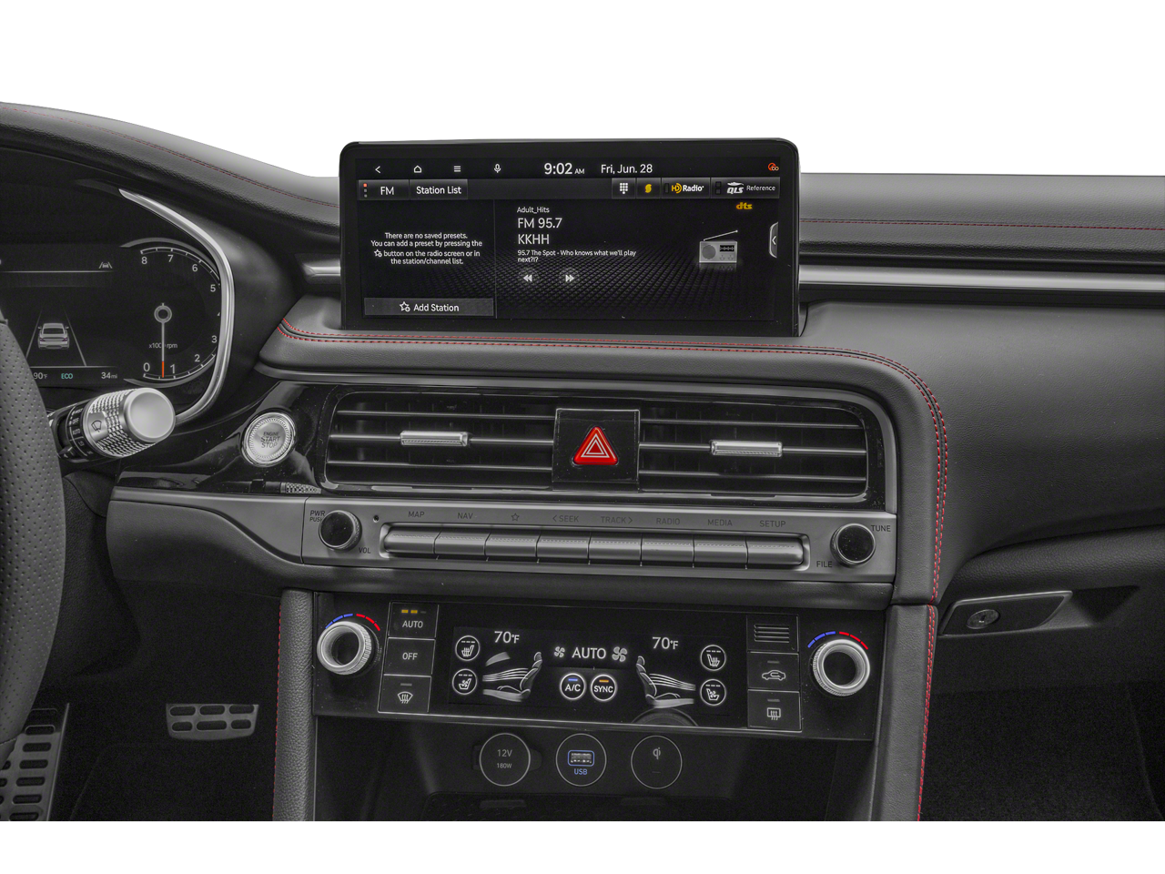 - Radio: AM/FM/SiriusXM/HD Lexicon Prem Audio System -inc: QuantumLogic surround sound, 15 high efficiency speakers including 2 subwoofers, Lexicon 11-channel digital external amplifier, speed-sensing, 5th generation navigation system w/10.25" touchscreen, dynamic voice recognition, connected routing, over the air updates, Android Auto and Apple CarPlay, SiriusXM Radio w/90-day trial subscription (not available in Alaska or Hawaii), Genesis connected services, Bluetooth® hands-free phone and audio streaming system